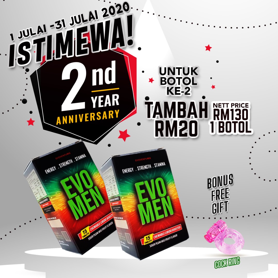 SEMPENA ULANGTAHUN KEDUA EVOMEN, KAMI MENAWARKAN HARGA SUPER JIMAT UNTUK ANDA. HARGA SEBOTOL EVOMEN RM130. TAPI...