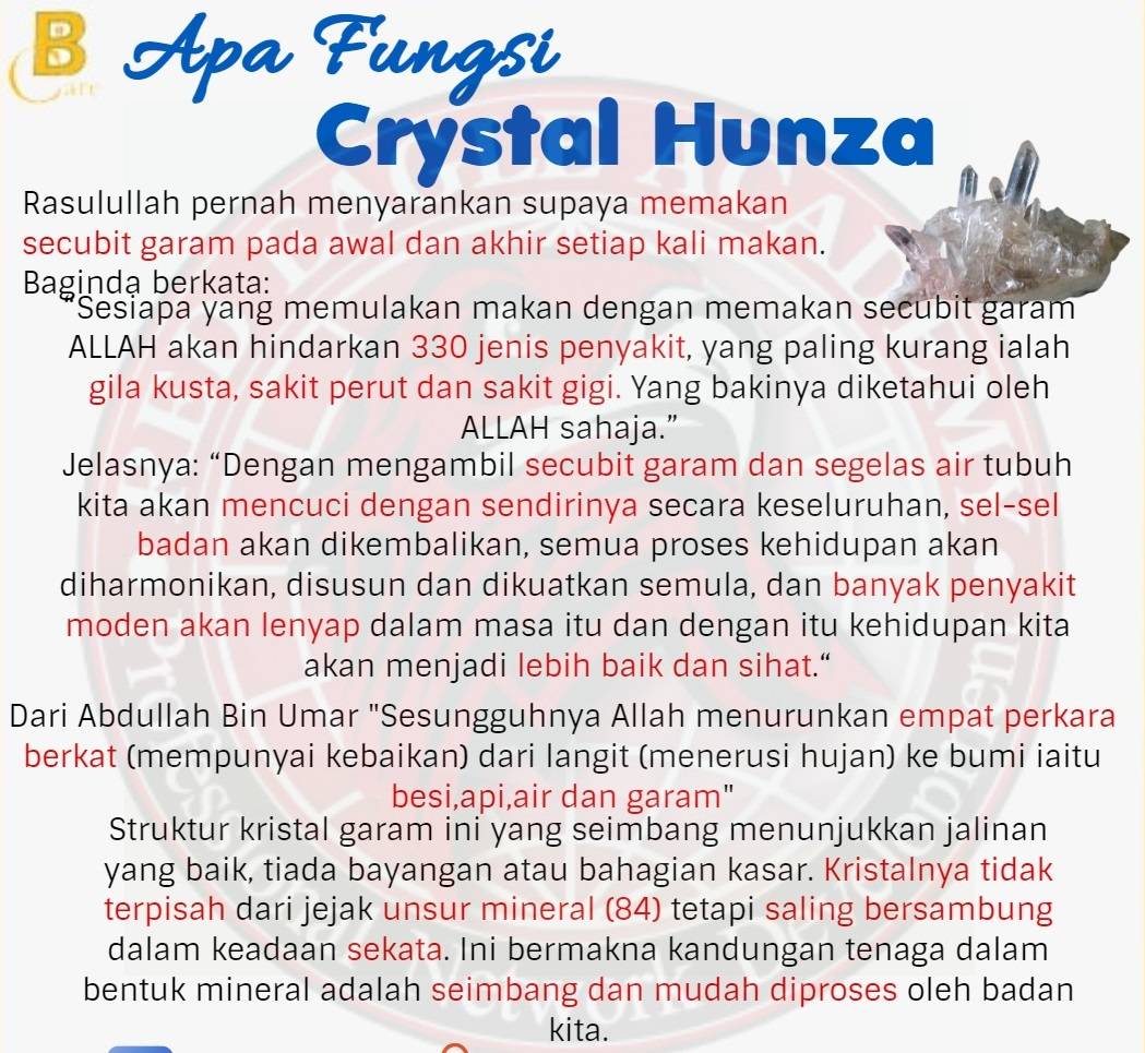 3 ) Nabi Muhammad SAW (Mineral Garam Kristal Hunza).