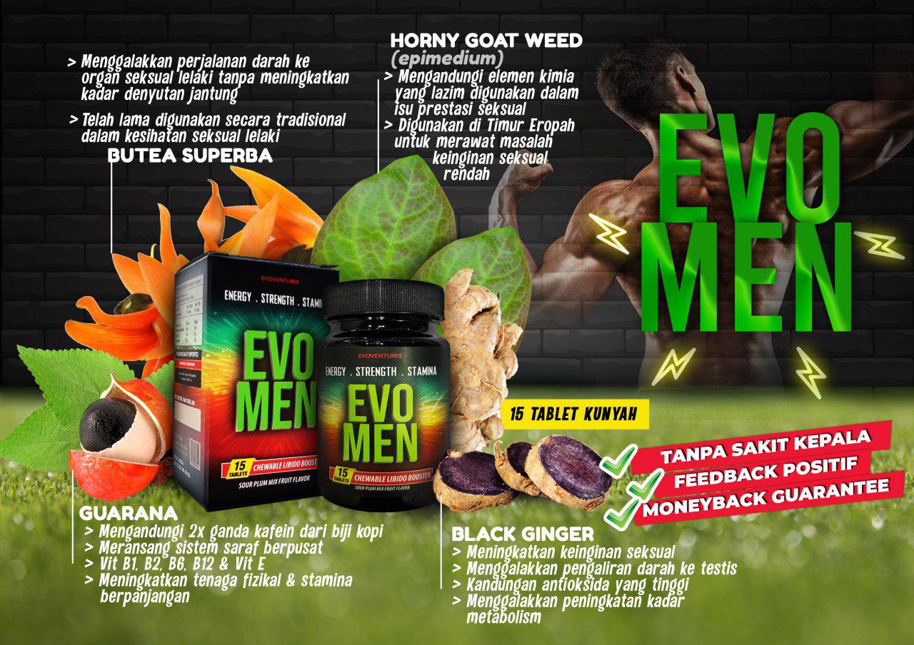 MENGANDUNGI HERBA SEMULAJADI YANG SELAMAT DAN DIPERCAYAI MAMPU MENINGKATKAN KEINGINAN SEKSUAL LELAKI.EVOMEN berfungsi untuk menambahkan