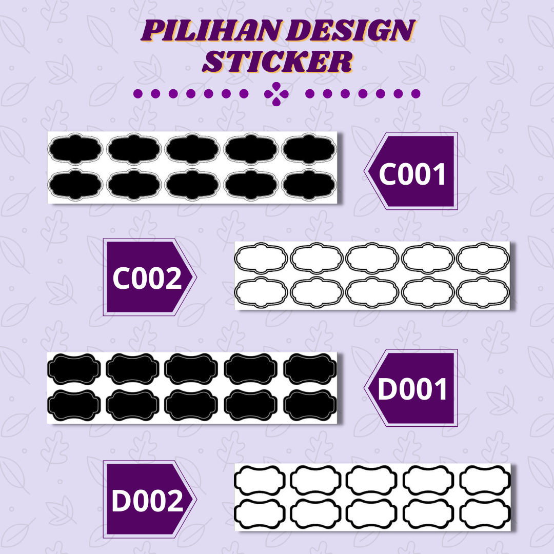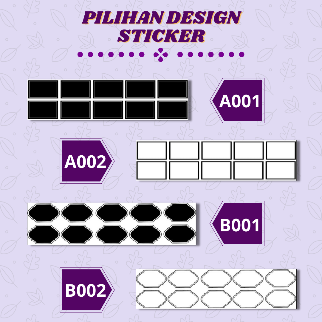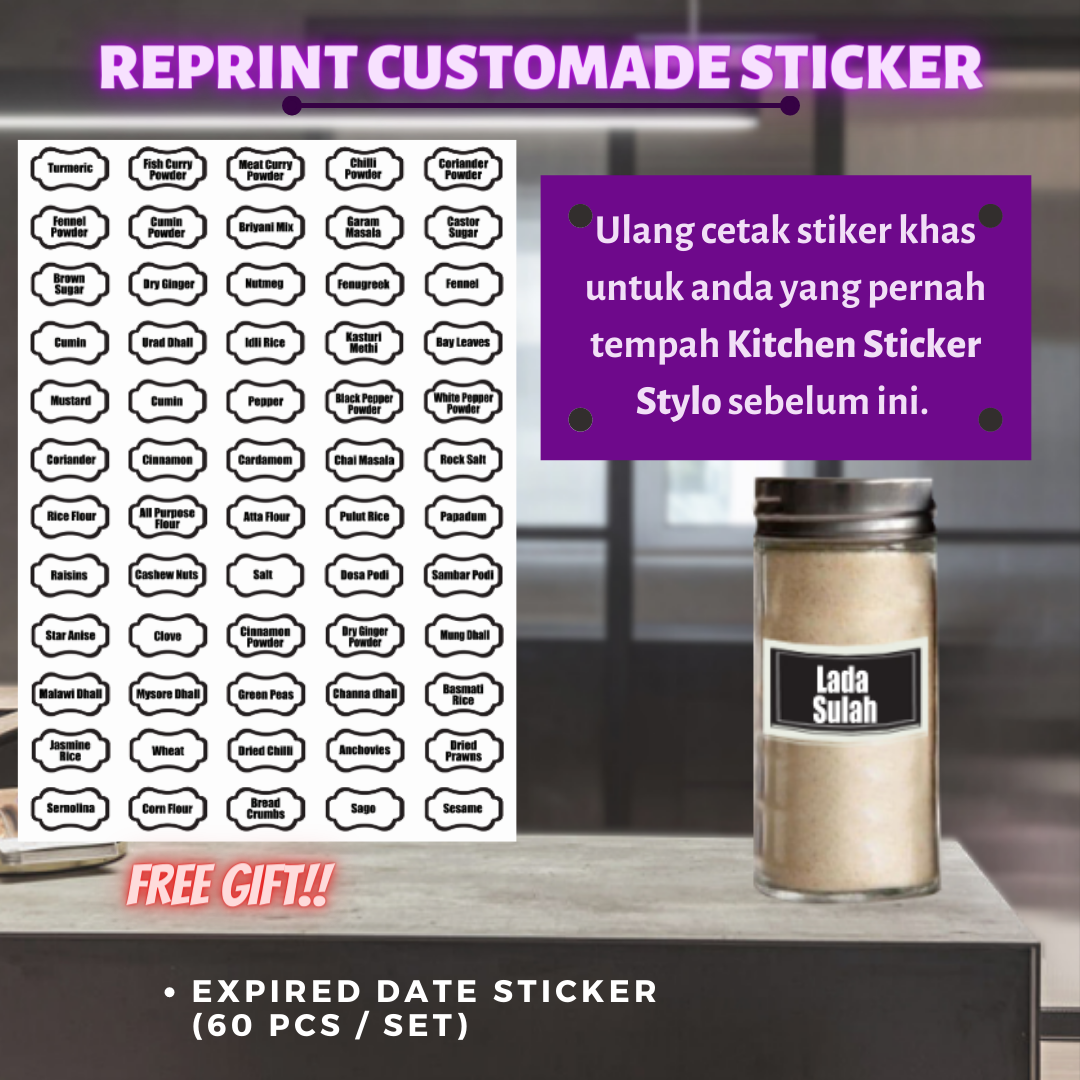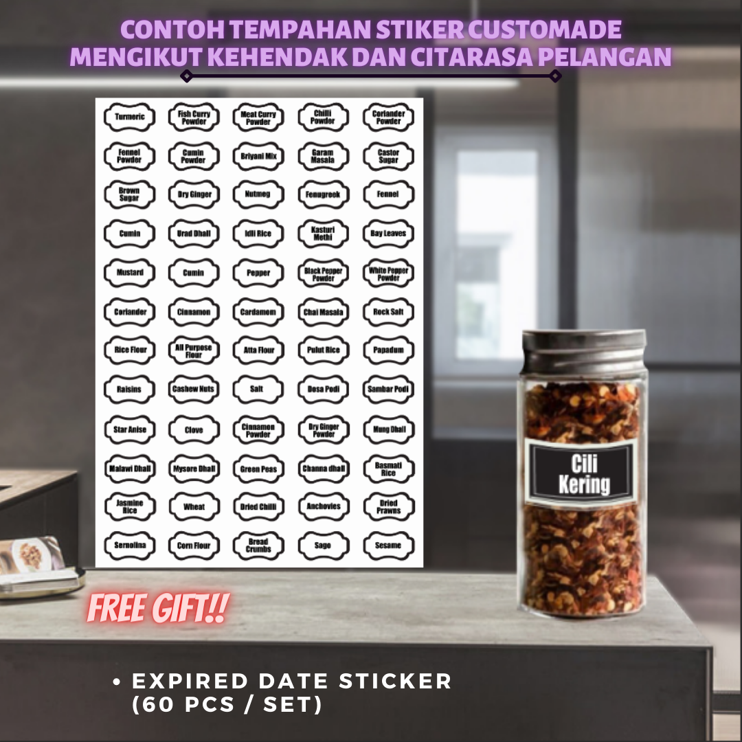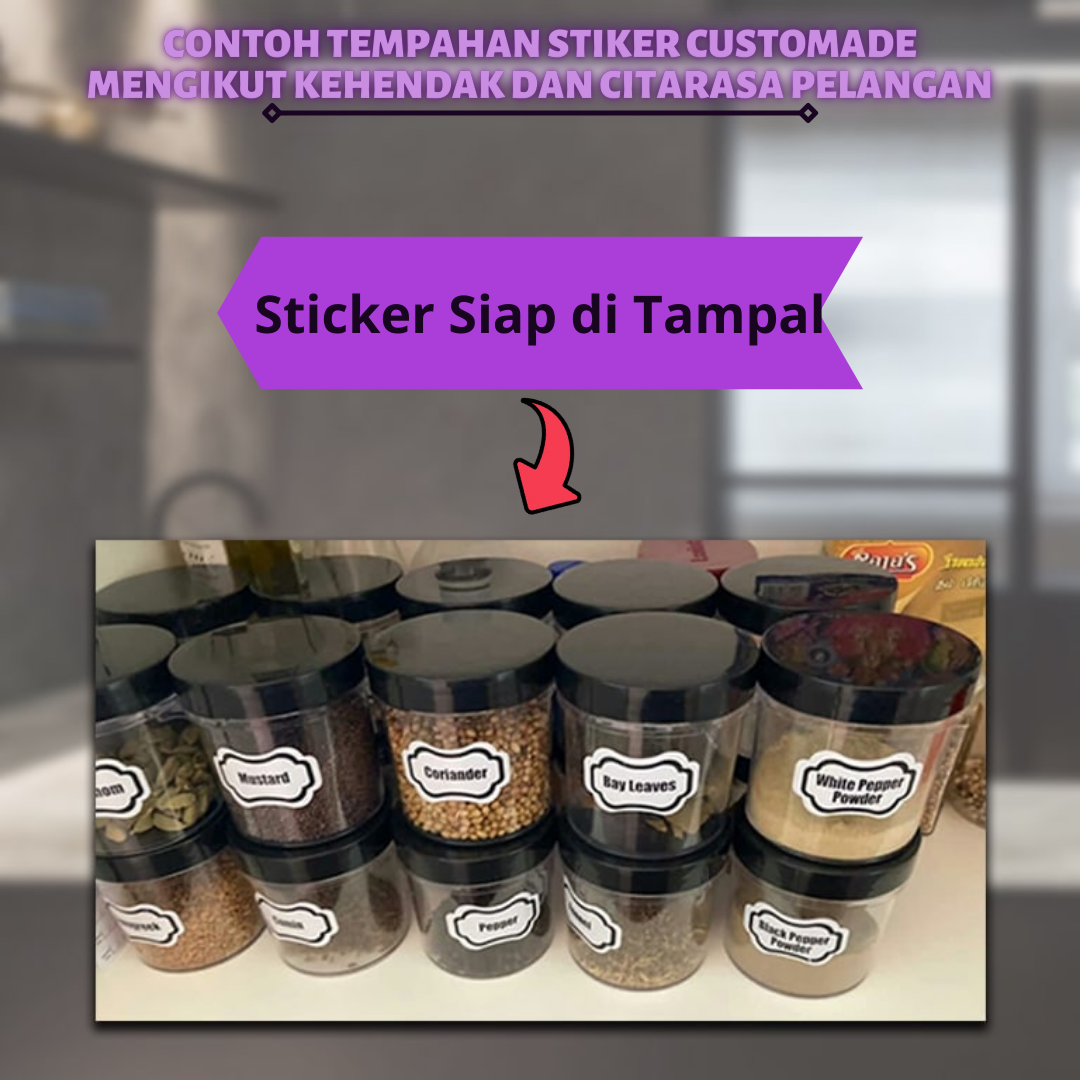 Bagi senarai label untuk bekas yang tidak terdapat di dalam pakej yang kami tawarkan, boleh menempah "Customised Sticker". Jika terdapat sebarang pertanyaan mengenai "Customised Sticker" boleh hubungi