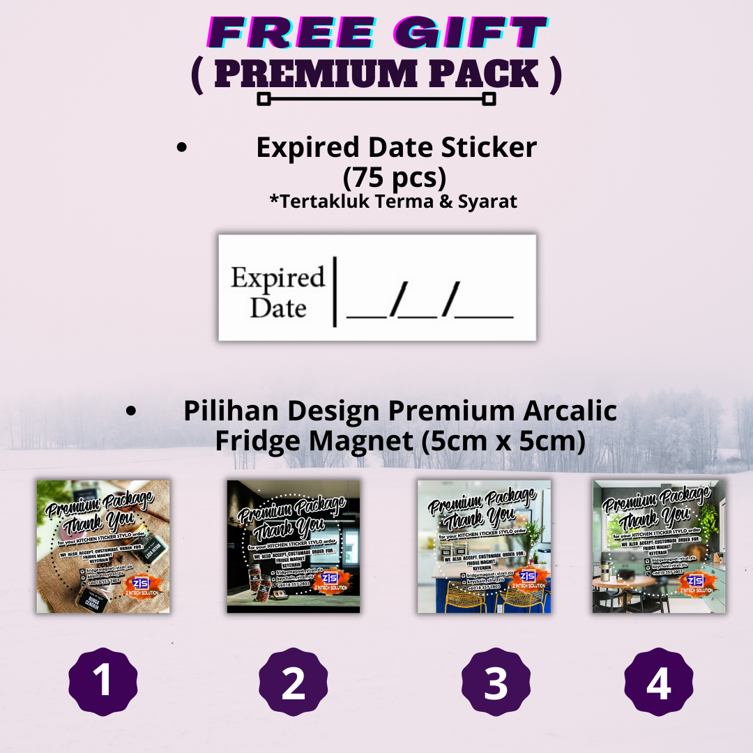 Pakej Premium Pack pun boleh Add On Expired Date Sticker. Bagi anda yang mahu add on Expired Date Sticker ini boleh lah beli dengan harga rm1.50 dan kami akan berikan 100 pcs stiker expired date.