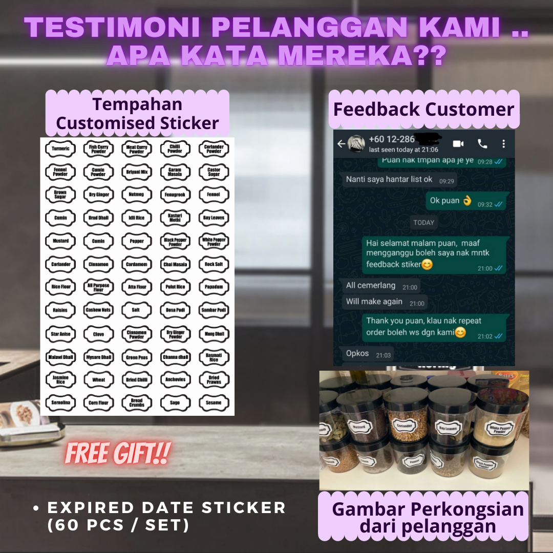 GIFT PERCUMA EXPIRED DATE STICKERBest tak? Dengan tawaran harga yang menarik, anda bukan sahaja dapat stiker label bekas, tetapi kami bagi percuma Expired Date Sticker untuk anda labelkan dibekas anda.
